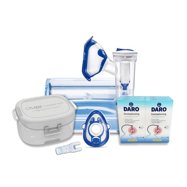 De starter-set is speciaal samengesteld zodat u alles compleet heeft. Zo kunt u na ontvangst meteen beginnen met vernevelen. In het pakket zit naast de Delphinus vernevelaar ook fysiologische zoutoplossing. Dit kunt u zo gebruiken om te vernevelen, of in combinatie met medicatie. 1 ampul is precies genoeg voor 1 vernevelsessie. Handig dus. Ook zitten alle bijbehorende accessoires in de starter-set en tot slot de hygiëne box. Hiermee kunt u uw accessoires grondig schoonmaken.
